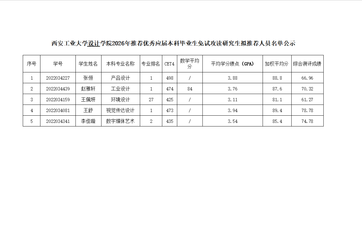 威廉williamhill官网2026年推荐优秀应届本科毕业生免试攻读研究生拟推荐人员名单公示
